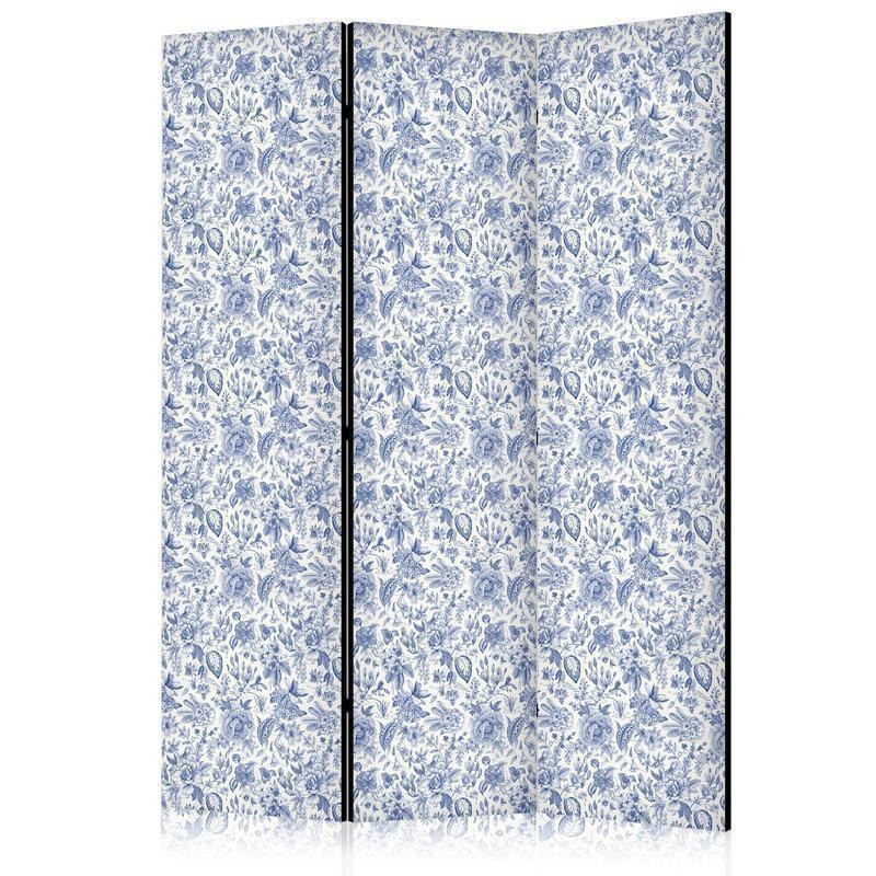• Biombo - Illustration in Vintage Style - Blue Flowers on a White Background