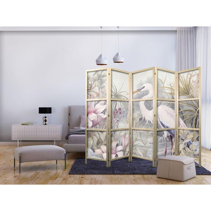 Paravan japonez - Heron wading in a pond – illustration in bright colours