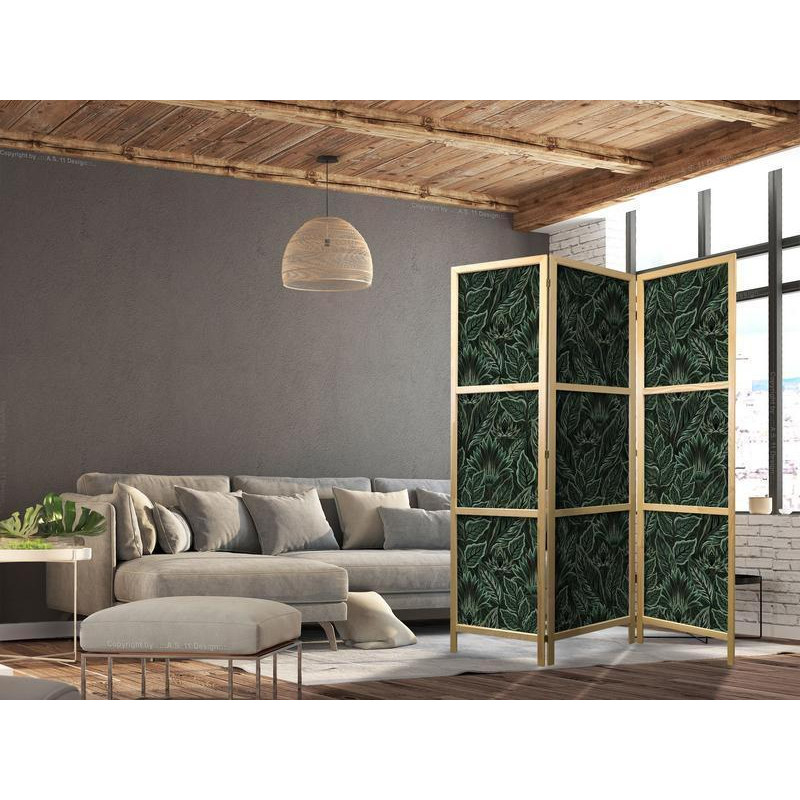 • Paravan japonez - Dense Vegetation - Botanical Patterns in Illustrative Style Green
