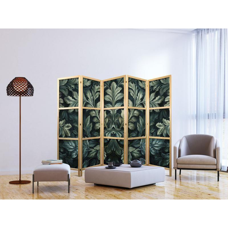 • Paravan japonez - Dark Green Victorian Leaves - Botanical Carved Composition