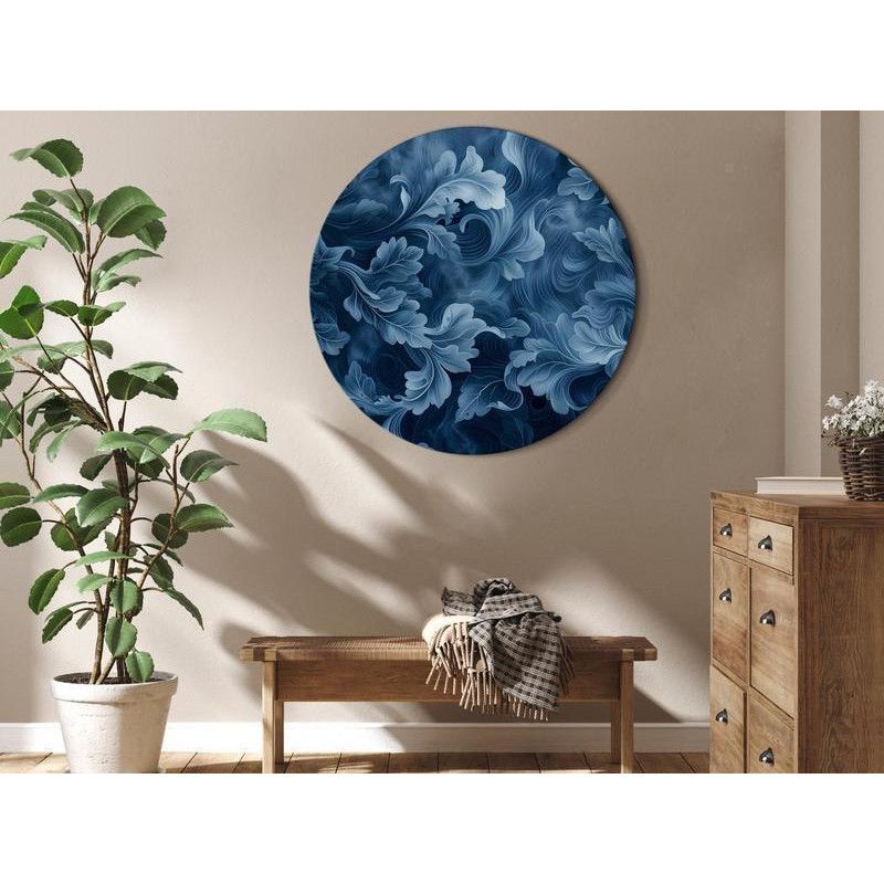 Tablou rotund - Abstract Ornaments Dark Blue Victorian Leaves