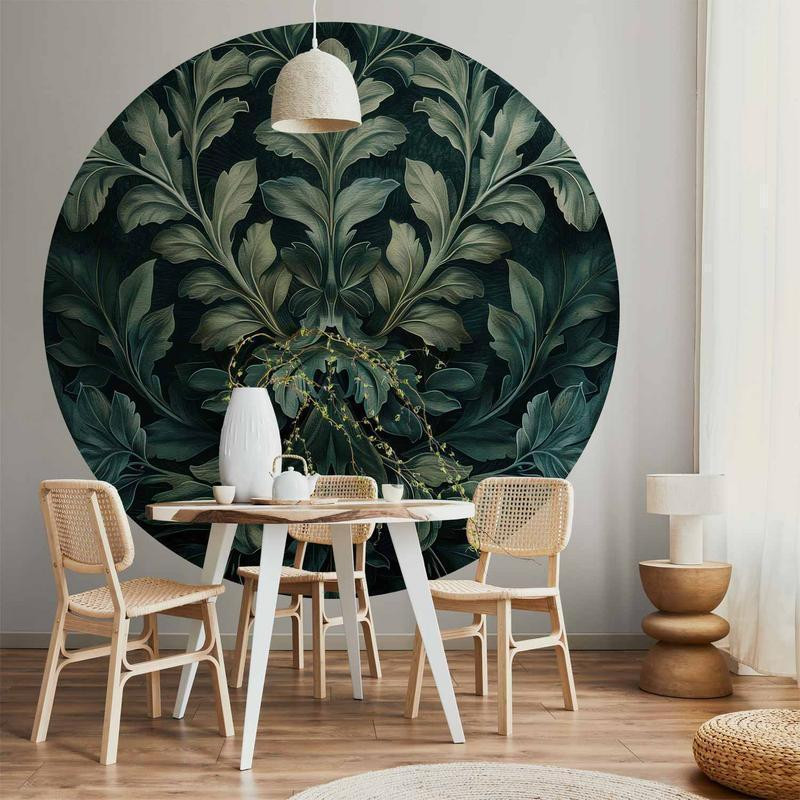 Descoperă o decorațiune de perete neobișnuită cu fototapeta noastră în formă de cerc, care combină perfect estetica și funcționalitatea. Forma universală a cercului se potrivește de minune atât în amenajări moderne, cât și în amenajări interioare clasice. Durabile și ușor de montat, fototapetele rotunde te ajută să creezi simplu un spațiu original acasă, la birou sau într-un local gastronomic. Fototapet rotund - Victorian leaves in dark greens este disponibilă în diverse dimensiuni, ceea ce permite o potrivire ideală cu suprafața decorată. Investiția într-o fototapetă rotundă nu înseamnă doar îmbogățirea vizuală a interiorului, ci și o soluție practică care susține confortul psihic. Mediul estetic influențează starea de bine și productivitatea, iar elementele decorative alese cu grijă pot îmbunătăți semnificativ relaxarea sau pot stimula creativitatea.