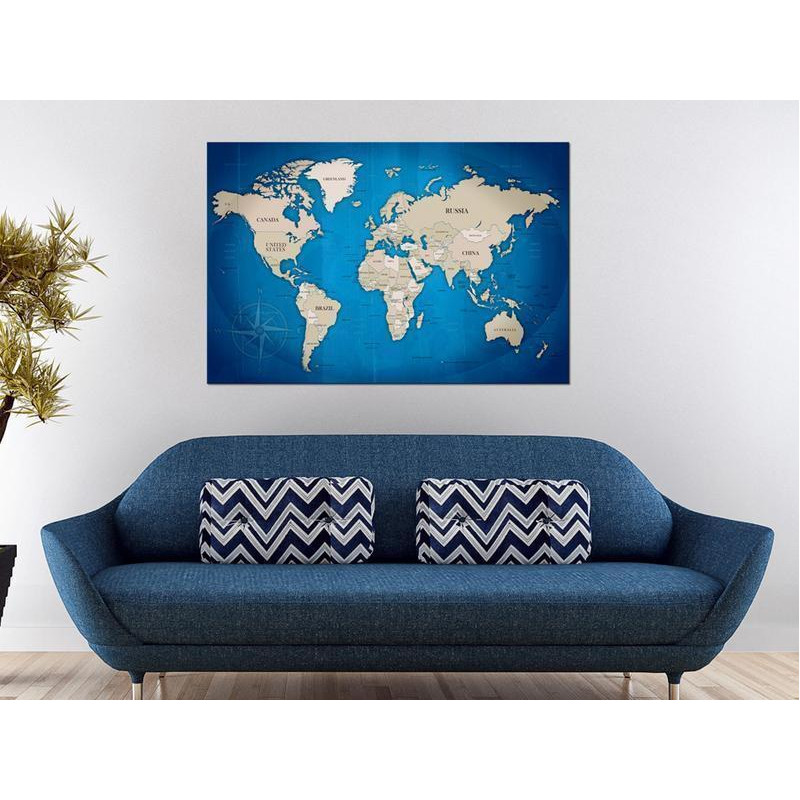 Tabloul din plută "Tablou din plută - Dark Blue Trail" este un produs destinat celor care caută decorațiuni originale pentru pereți. Datorită materialului ecologic și designului interesant "Tablou din plută - Dark Blue Trail" un panou din plută obișnuit se poate transforma într-o decorațiune elegantă, care poate fi folosită într-o varietate de moduri. Cu ajutorul pionezelor puteți fixa pe mapă poze, notițe, marca locurile vizitate. Tabloul din plută "Tablou din plută - Dark Blue Trail" este cu mult mai ușor decât decorațiunile tradiționale pentru pereți. Datorită acestui fapt panourile decorative din plută pot fi amplasate în orice loc din locuința dumneavoastră sau din birou. Pânza imprimată se aplică pe panoul din plută. Se caracterizează prin culori intense și reflectă chiar și cele mai mici detalii. Fixați pioneze sau notițe și creați pe perete un design personalizat! Harta din plută este o idee de cadou perfectă pentru iubitorii de călătorii!