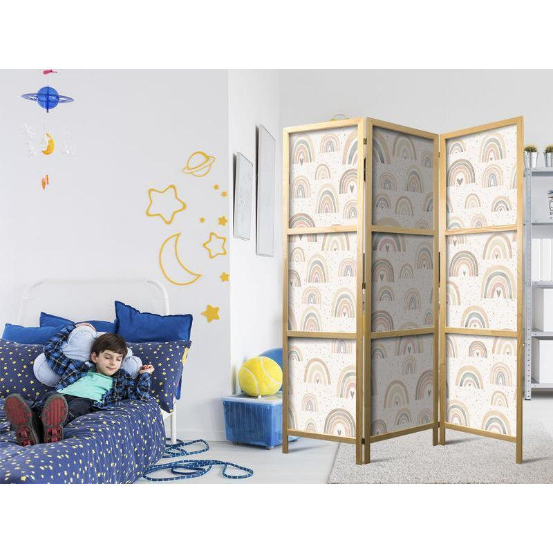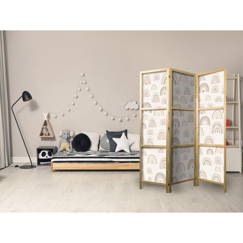 Paravan japonez - Spring - Pastel Rainbows on a Rainy Day with Hearts