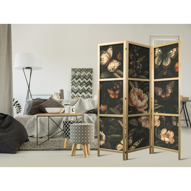 • Japonska pregrada - Mysterious Garden - Butterflies Flying Over Flowers - Rustic Evening