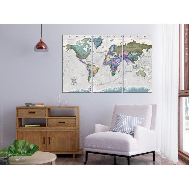 Pinboard "Tabla iz plute - World Destinations (3 Parts)" je izdelek za ljudi, ki iščejo originalno stensko dekoracijo. Zaradi ekološkega materiala in zanimive oblike „x”, se navadna tabla iz plute spremeni v moderno dekoracijo, ki se lahko uporablja na različne načine. Pritrdite lahko svoje beležke in fotografije ali označite kraje, ki ste jih obiskali. Pinboard "Tabla iz plute - World Destinations (3 Parts)" je veliko lažji od tradicionalnih stenskih dekoracij. Zahvaljujoč temu lahko dekorativne plutovinaste table obesimo kjerkoli v vašem stanovanju ali pisarni. Potiskano platno je nameščeno na plutovinasto tablo. Značilnost tiska so krepke barve in odsevanje celo najmanjših podrobnosti. Pritrdite svoje beležke in kreirajte svoj lasten dizajn na vaši steni. Plutovinast zemljevid je odlična ideja za darilo za ljubitelje potovanj!