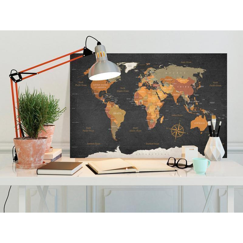 Pinboard "Tabla iz plute - Secrets of the Earth" je izdelek za ljudi, ki iščejo originalno stensko dekoracijo. Zaradi ekološkega materiala in zanimive oblike „x”, se navadna tabla iz plute spremeni v moderno dekoracijo, ki se lahko uporablja na različne načine. Pritrdite lahko svoje beležke in fotografije ali označite kraje, ki ste jih obiskali. Pinboard "Tabla iz plute - Secrets of the Earth" je veliko lažji od tradicionalnih stenskih dekoracij. Zahvaljujoč temu lahko dekorativne plutovinaste table obesimo kjerkoli v vašem stanovanju ali pisarni. Potiskano platno je nameščeno na plutovinasto tablo. Značilnost tiska so krepke barve in odsevanje celo najmanjših podrobnosti. Pritrdite svoje beležke in kreirajte svoj lasten dizajn na vaši steni. Plutovinast zemljevid je odlična ideja za darilo za ljubitelje potovanj!