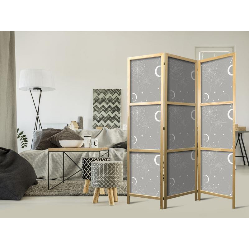 Japonska pregrada - Cosmic Fireworks - Elegant Pattern with Moons and Stars on a Gray Background