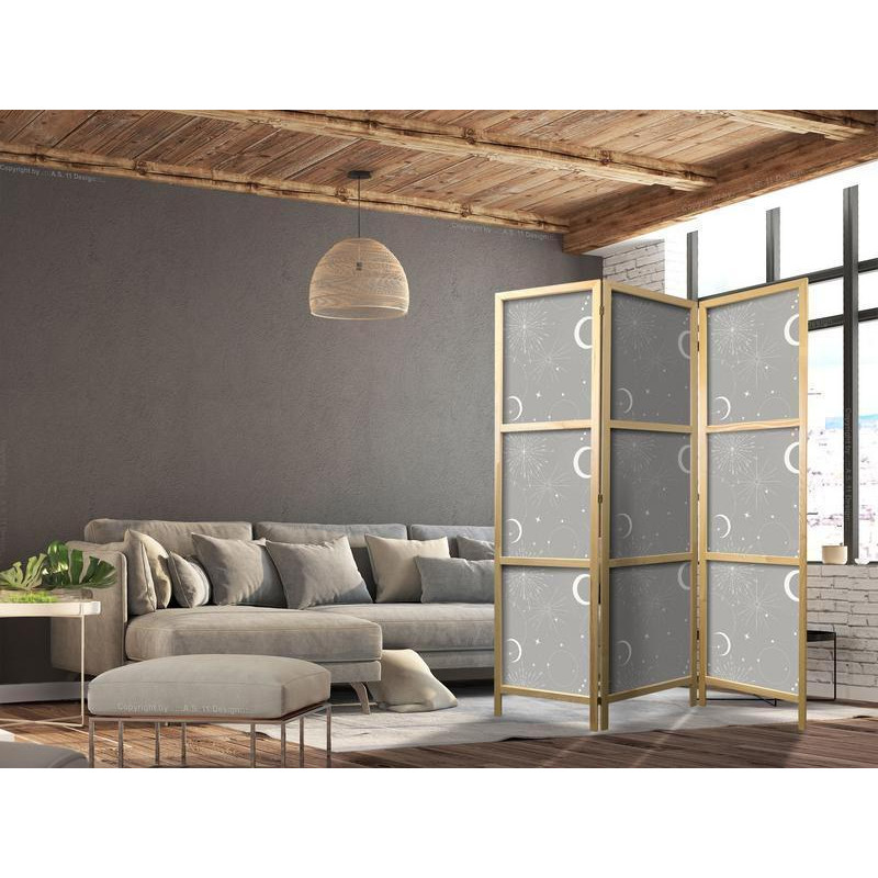 • Japonska pregrada - Cosmic Fireworks - Elegant Pattern with Moons and Stars on a Gray Background
