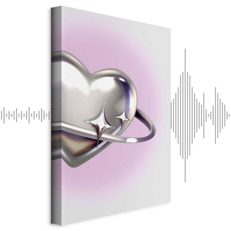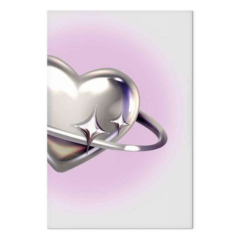 • Slika - Cosmic Heart - Silver Heart with a Ring on a Purple Background