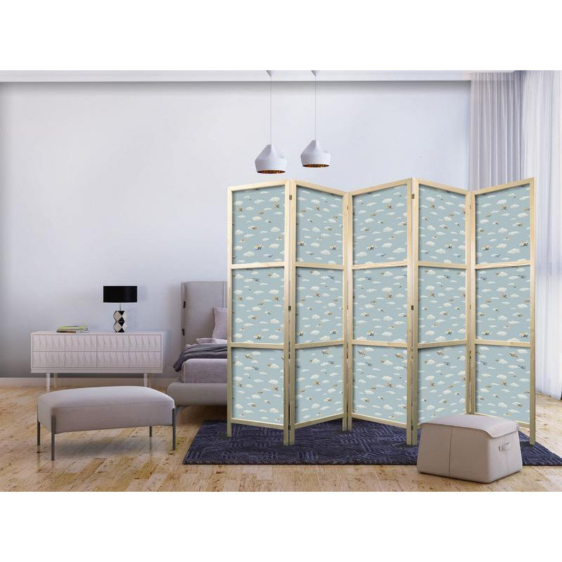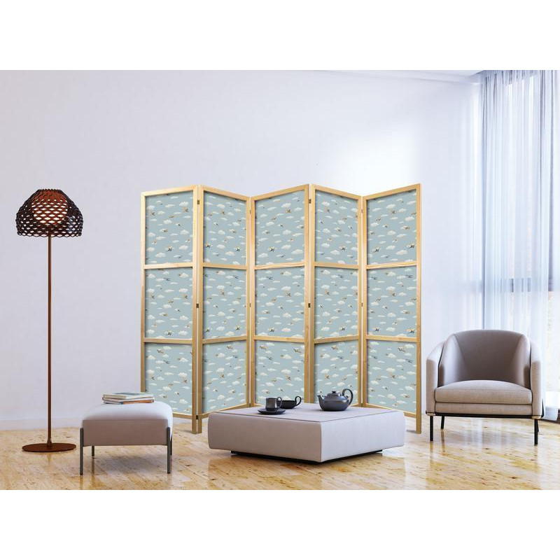 • Japonska pregrada - Illustration - Yellow-Blue Airplanes Against a Blue Sky