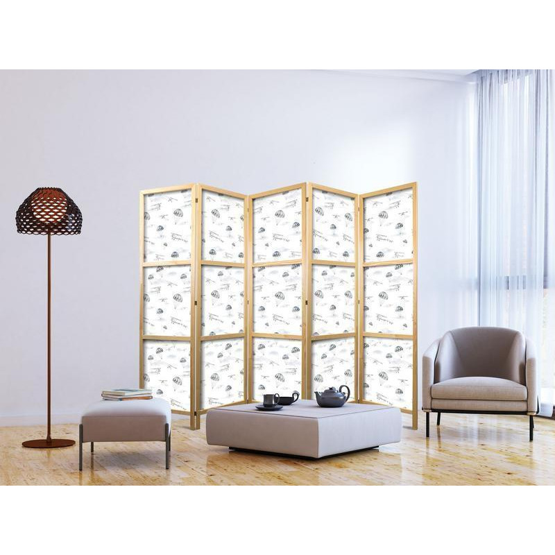 Japonska pregrada - Watercolor - Airplane Show on a Bright Sky with Delicate Clouds