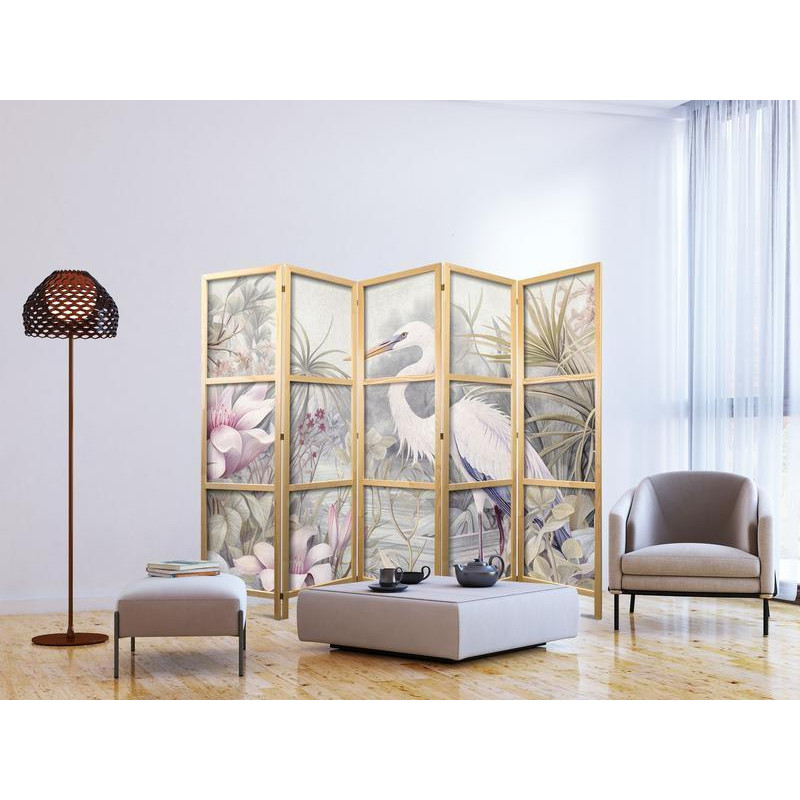 • Japonska pregrada - Heron wading in a pond – illustration in bright colours